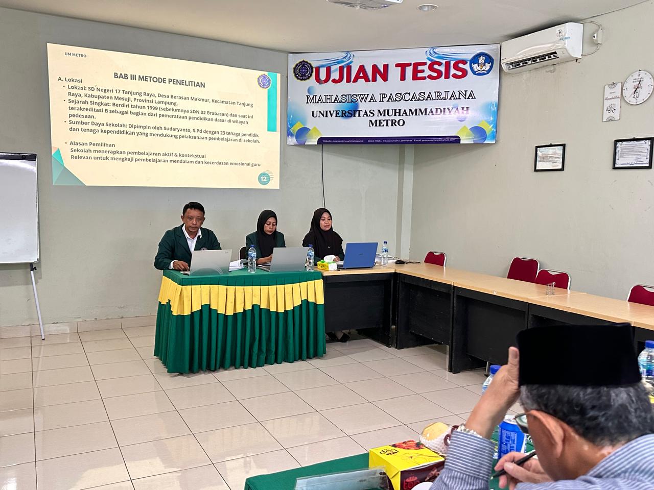 Metro, 10 April 2026 — Program Pascasarjana Universitas Muhammadiyah Metro melalui Program Studi S2 Administrasi Pendidikan menyelenggarakan kegiatan Seminar Proposal Tesis pada Jumat, 10 April 2026 yang bertepatan dengan 23 Syawal 1447 H. Kegiatan ini dilaksanakan di Ruang H.1.3 Kampus Pascasarjana UM Metro sebagai bagian dari tahapan akademik mahasiswa sebelum melanjutkan ke penelitian tesis.